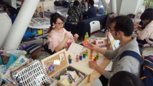 車椅子カラーセラピストのHaruちゃんは晴れ舞台だった少し緊張していましたが、たくさんのお客様に対応していました。