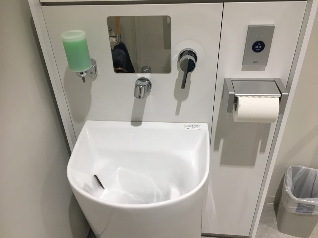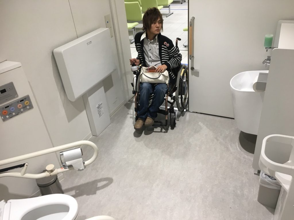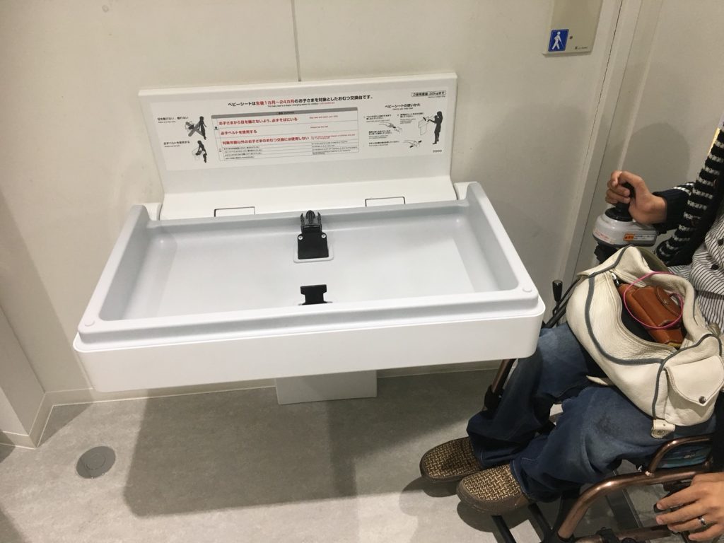 1階のトイレにあるのはおむつ交換台です。ユニバーサルシートはありません。